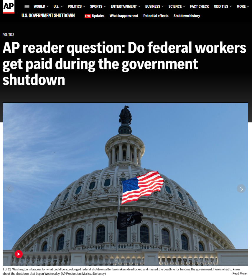 全球媒体聚焦 美国“停摆”一周谁的日子欠好过